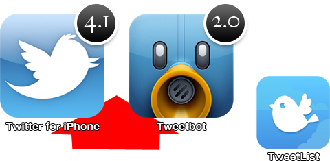 | Twitter for iPhone 4.1 | Tweetbot 2.0 | TweetList 2.9.0 | |